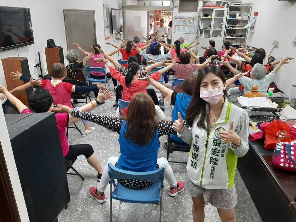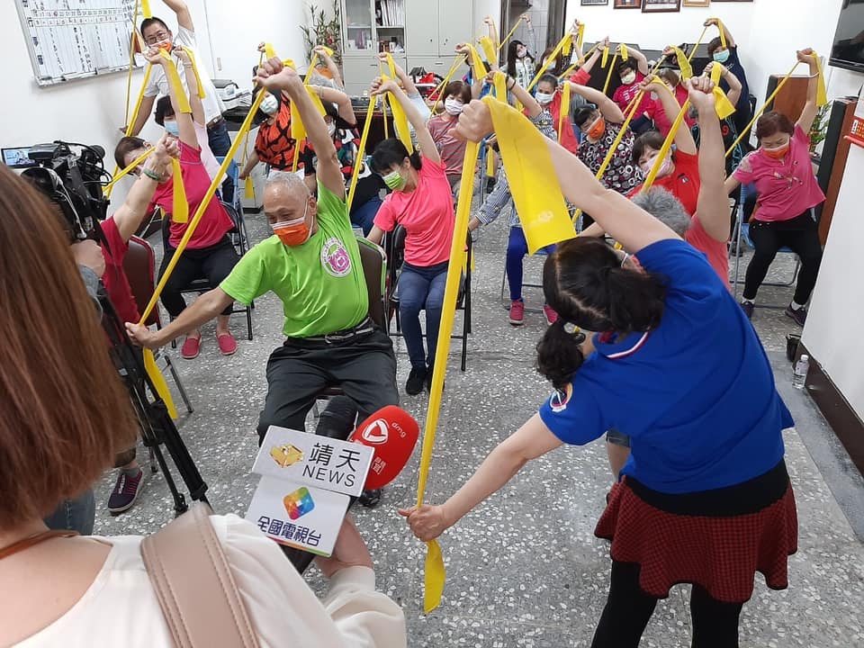 板橋區宏翠里自108年起,即每週舉辦一次「宏翠里動健康」活動,由里長邀請老師來為里內銀髮族帶動健康操,使老人家們每週有機會動一動身體、動出健康。而在本月,更有電視台至里內訪問,將里長的健康理念推廣出去。 相關照片 由老師帶動里民一起動一動 使用簡單的彈力帶效果更好唷~ 立委張宏陸助理也蒞臨指導 里長黃一晉接受電視台訪問