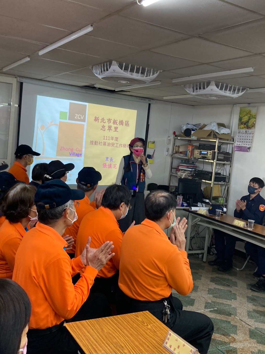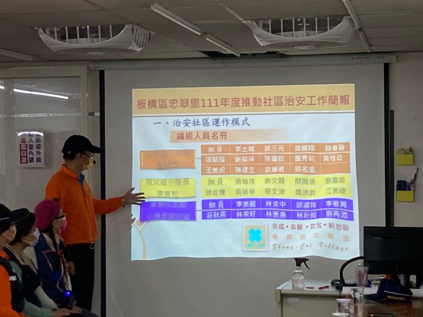 12月16日為111年度忠翠里推動社區治安工作績效評鑑會議,由忠翠里里長張慎芝及巡守隊副隊長李高榮以簡報方式向評鑑委員們報告,並由市府各局處組成評鑑小組針對忠翠里一年來的各項工作成果進行評核,評鑑圓滿達成,期望能獲得佳績。 相關照片 1.忠翠里社區治安工作績效評鑑會議 2.張慎芝里長報告 3.巡守隊副隊長李高榮報告 4.評鑑圓滿落幕