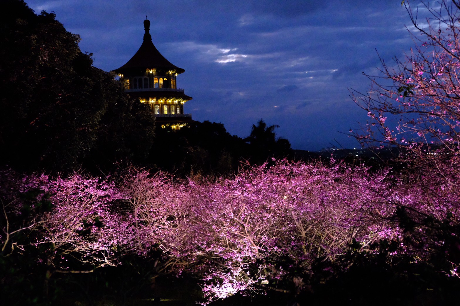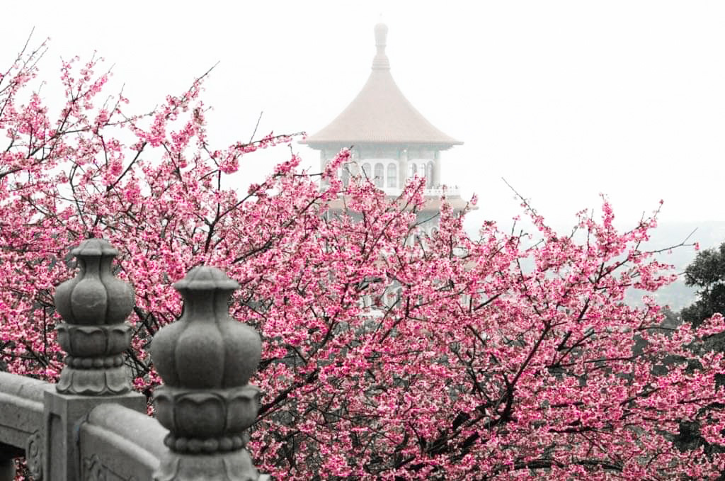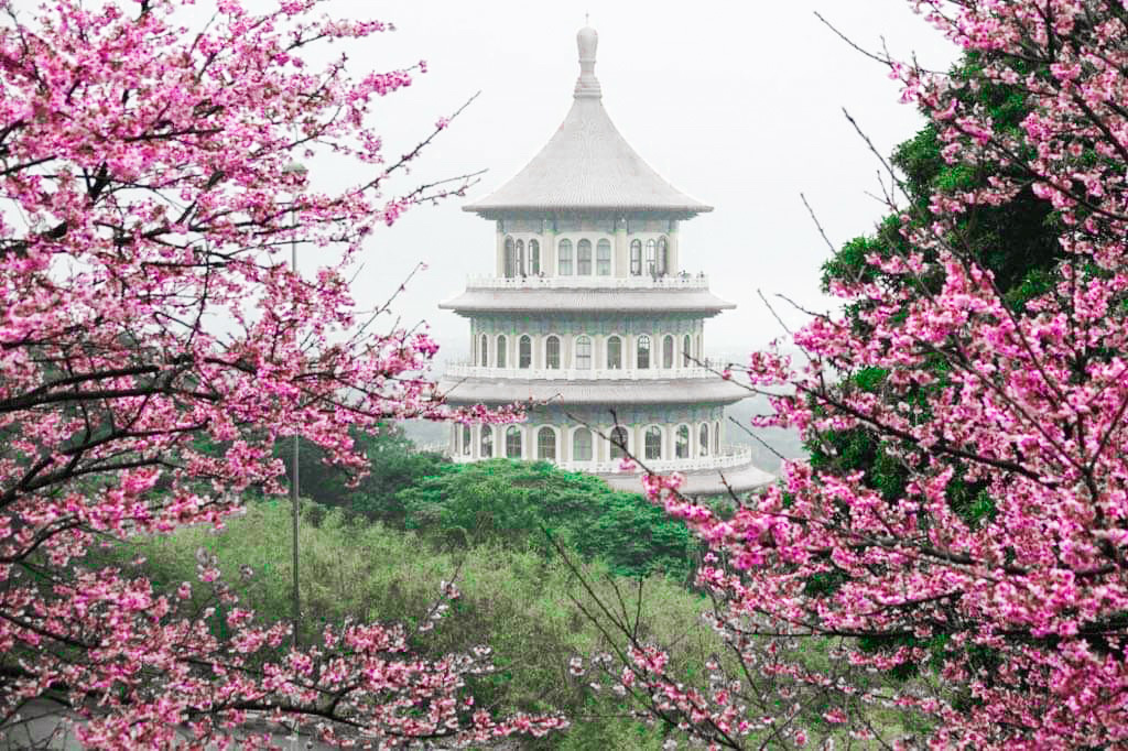 淡水天元宮位於新北市淡水源里北新路三段,距離淡水市區,淡水捷運站約5公里的路程,處於大屯山脈的西北邊,園區近年來每到3月時節周圍的櫻花盛開,成為大台北旅遊賞櫻相當興盛的景點,淡水天元宮有分後山與天壇兩處賞櫻區,兩區的櫻花品種不同,開花的時間不一樣,所以賞花的時間也會不同,後山主要是三色櫻,有粉色,白色,桃紅三色,這區會比較早開,天壇周圍的櫻花為吉野櫻,也是大家最喜歡拍的櫻花,會比後山稍微慢一個月左右才會盛開,在天元宮,晚上也是可以賞櫻的,晚上會開燈,也可以來這裡欣賞夜櫻!晚上賞櫻也是滿美的。