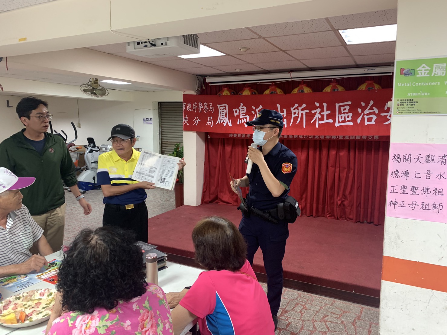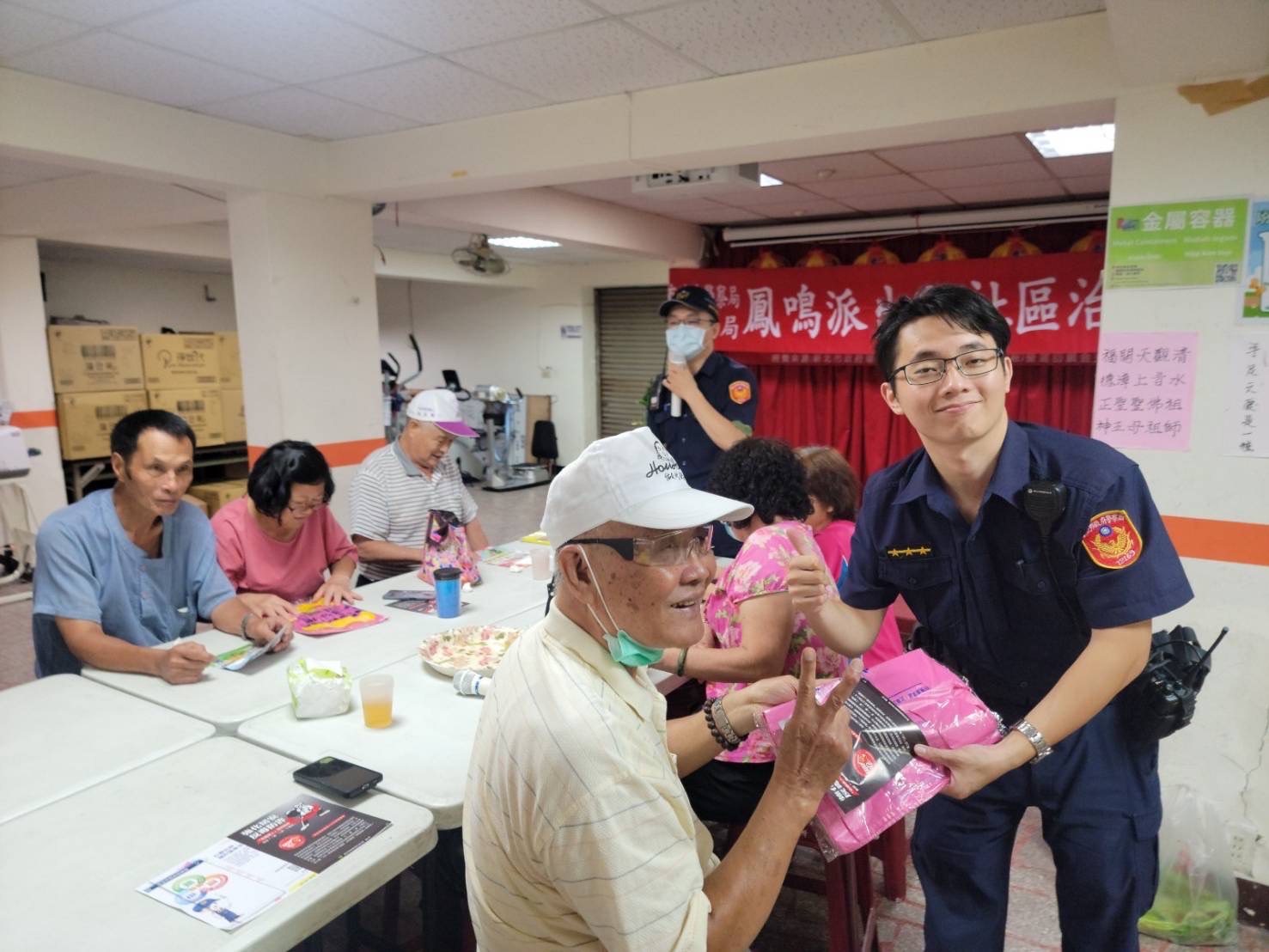鶯歌區鳳祥里於112年6月15日假鳳祥里市民活動中心辦理老人共餐活動,鳳鳴派出所派員實施犯罪預防宣導,並提醒里民詐騙電話關鍵字如醫院通知領藥、申請重病補助、銀行通知有人來領你的存款、警察通知你個人資料被冒用、檢察官說你是詐欺人頭戶、去超商收法院公文傳真、要將存款領出來監管帳戶等等詐騙手法,預防假檢警詐騙,請牢記「一聽、二掛、三查」! 相關照片 里長曾勝利致詞 鳳鳴派出所犯罪預防宣導 鳳鳴派出所犯罪預防宣導 鳳鳴派出所犯罪預防宣導