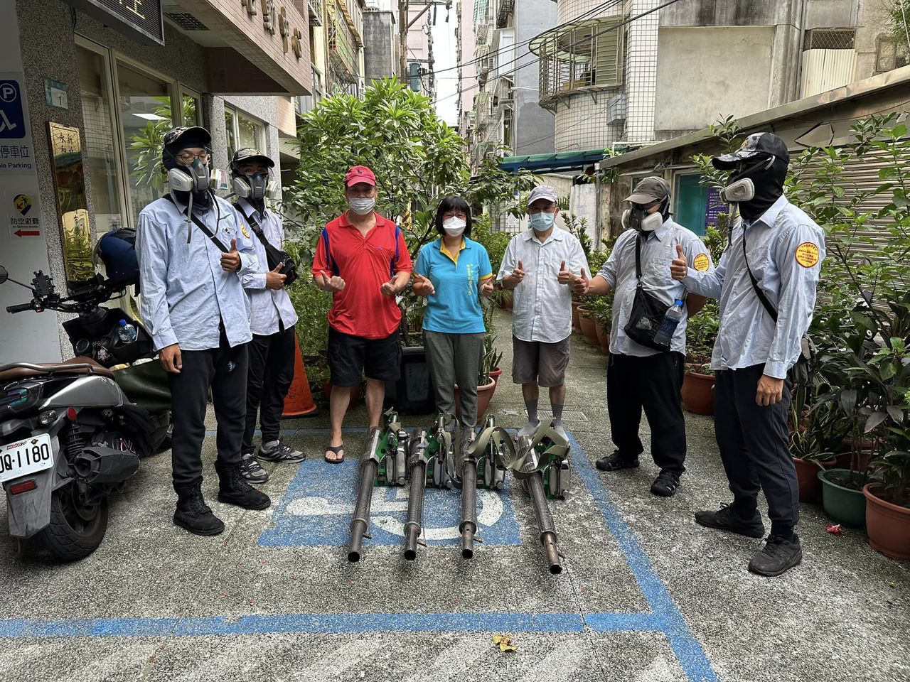 永和區豫溪里進行環境消毒作業,本次消毒為杜絕病媒蚊蟲的孳生,消毒業者為里內各個角落做確實徹底消毒完成。里長廖亦芳呼籲大家要加強居家環境清理,清除積水容器,遠離登革熱等傳染病威脅。 相關照片 消毒團隊 盆栽易積水處消毒 防火巷水溝消毒 水溝消毒
