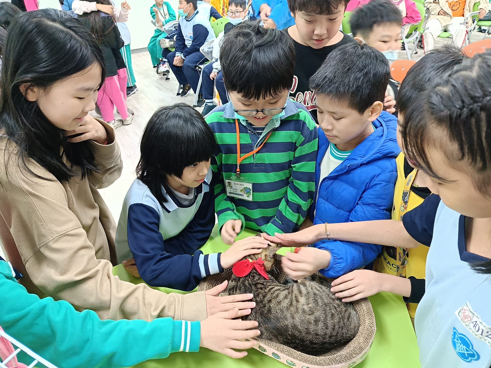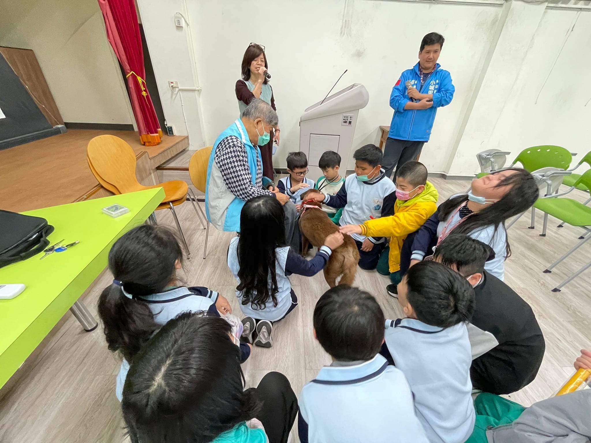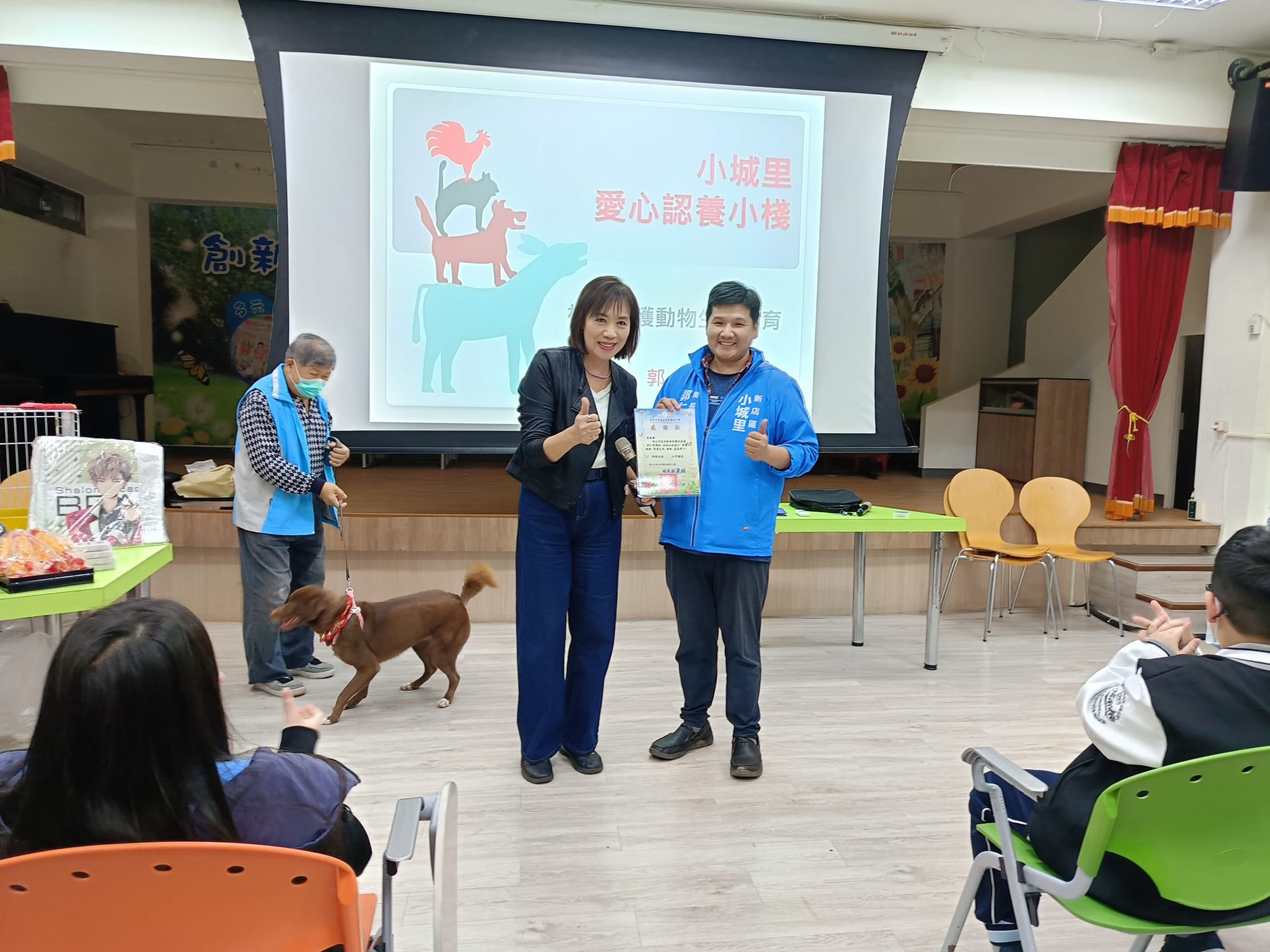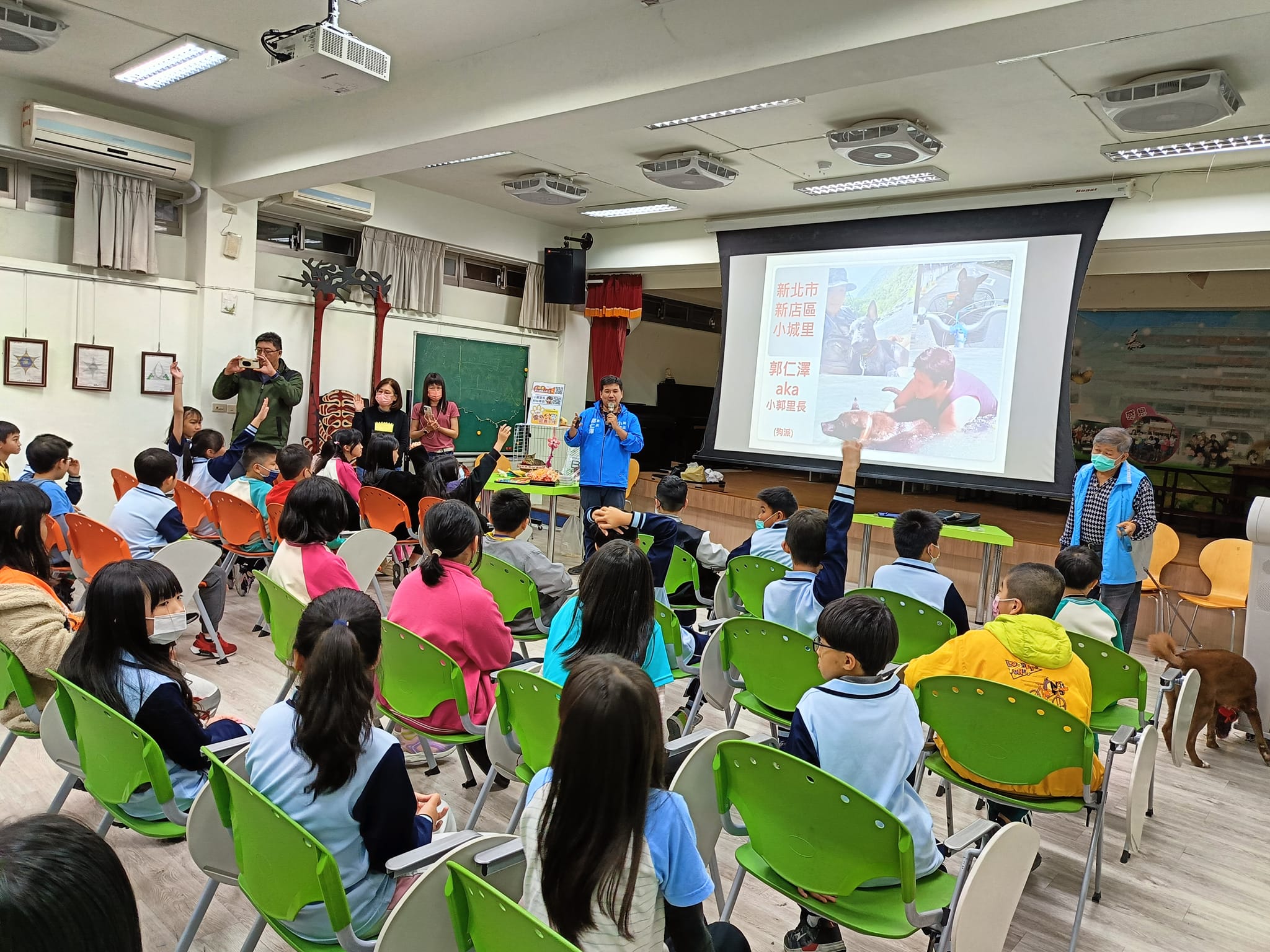 新店區小城里雙城國小生命教育公益講座,由小城里里長郭仁澤擔任講師,生命教育需從小紮根,宣導「認養不棄養」減少浪貓、浪狗,貓助教「烏龍茶」、狗助教「巧克力」從不會怯場,人人可摸超級棒。 相關照片 小城里里長宣導 愛心認養小棧 貓助教 狗助教