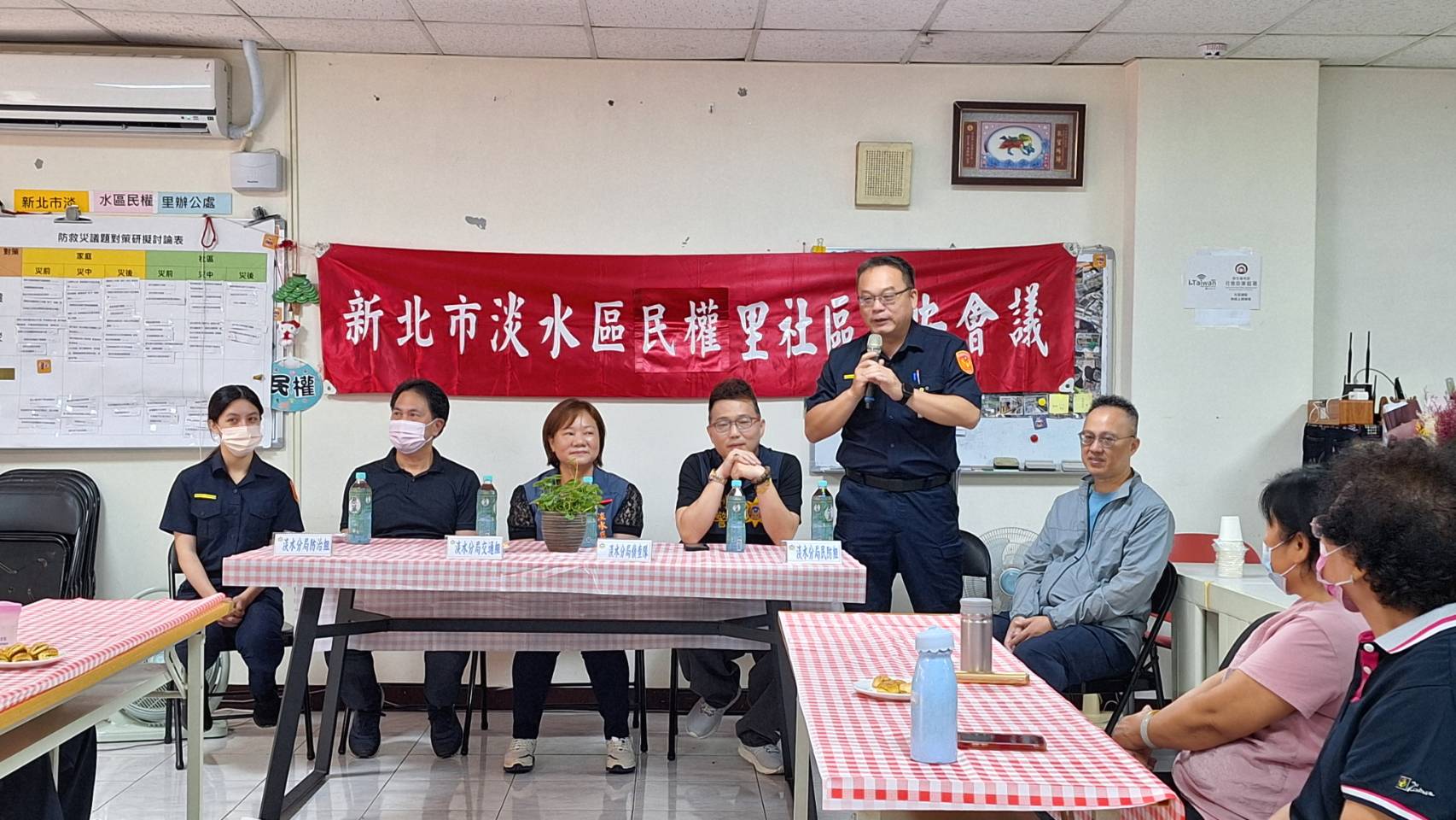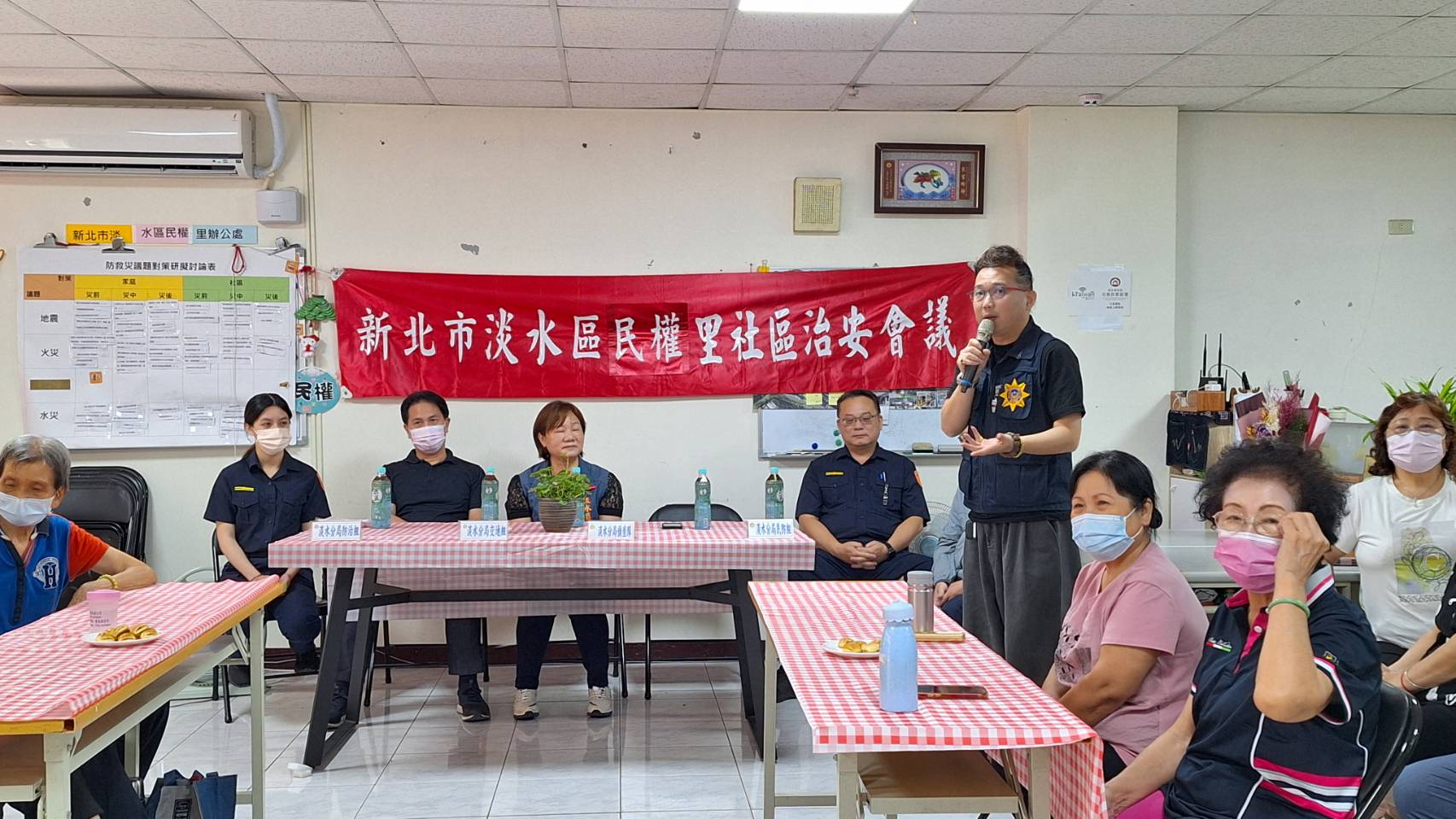 淡水分局於淡水區民權里辦理113年度社區治安會議由分局防治組黃明煌組長及竹圍派出所副所長許家源巡官列席,邀請民權里居民共同與會,期透過會議凝聚居民共識與建立良好關係,討論社區治安、交通問題,會中宣導交通安全、婦幼安全及防詐步驟,提昇居民反詐騙觀念,合力守護社區安全。 相關照片 淡水區民權里辦理社區治安會議 淡水分局防治組黃組長致詞 淡水分局偵查隊犯罪宣導 竹圍派出所副所報告轄區狀況
