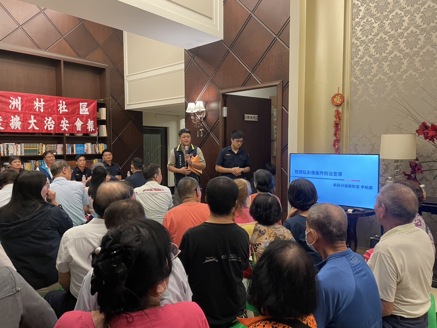 為了增進與鄰里社區間的聯繫交流及建築社區安全防護網,新莊分局與立廷里辦公室於本月15日舉辦社區治安會議,向里民朋友們宣導反詐騙、婦幼安全及交通安全的重要性,提供居民重要的觀念及提升對於生活周遭潛在風險的警覺性,也與里民交流轄內治安狀況,透過警民合作建立一個安全、安心、安居的幸福社區。 相關照片 婦幼安全宣導 反詐騙宣導 分局長致詞 會後大合照