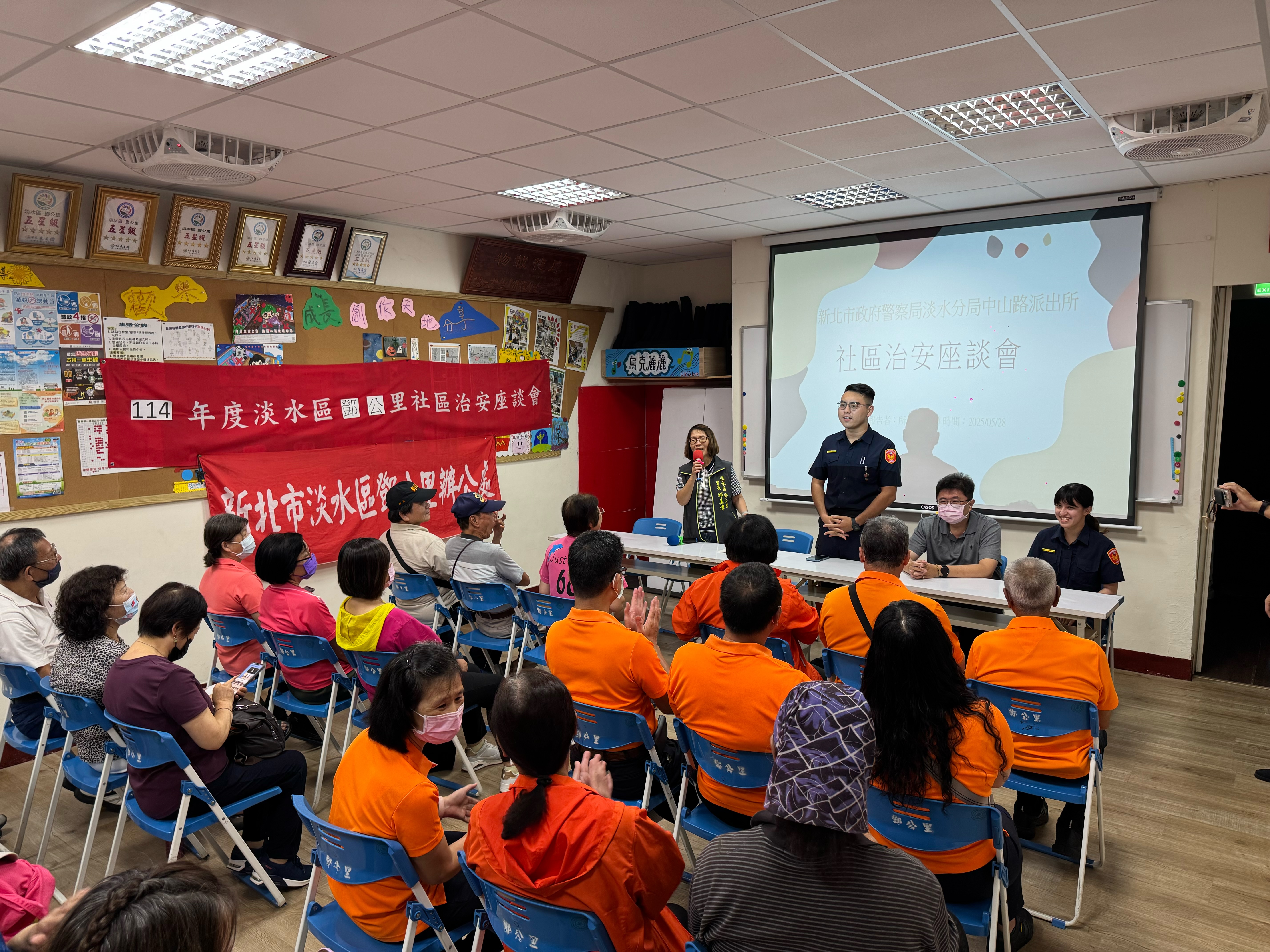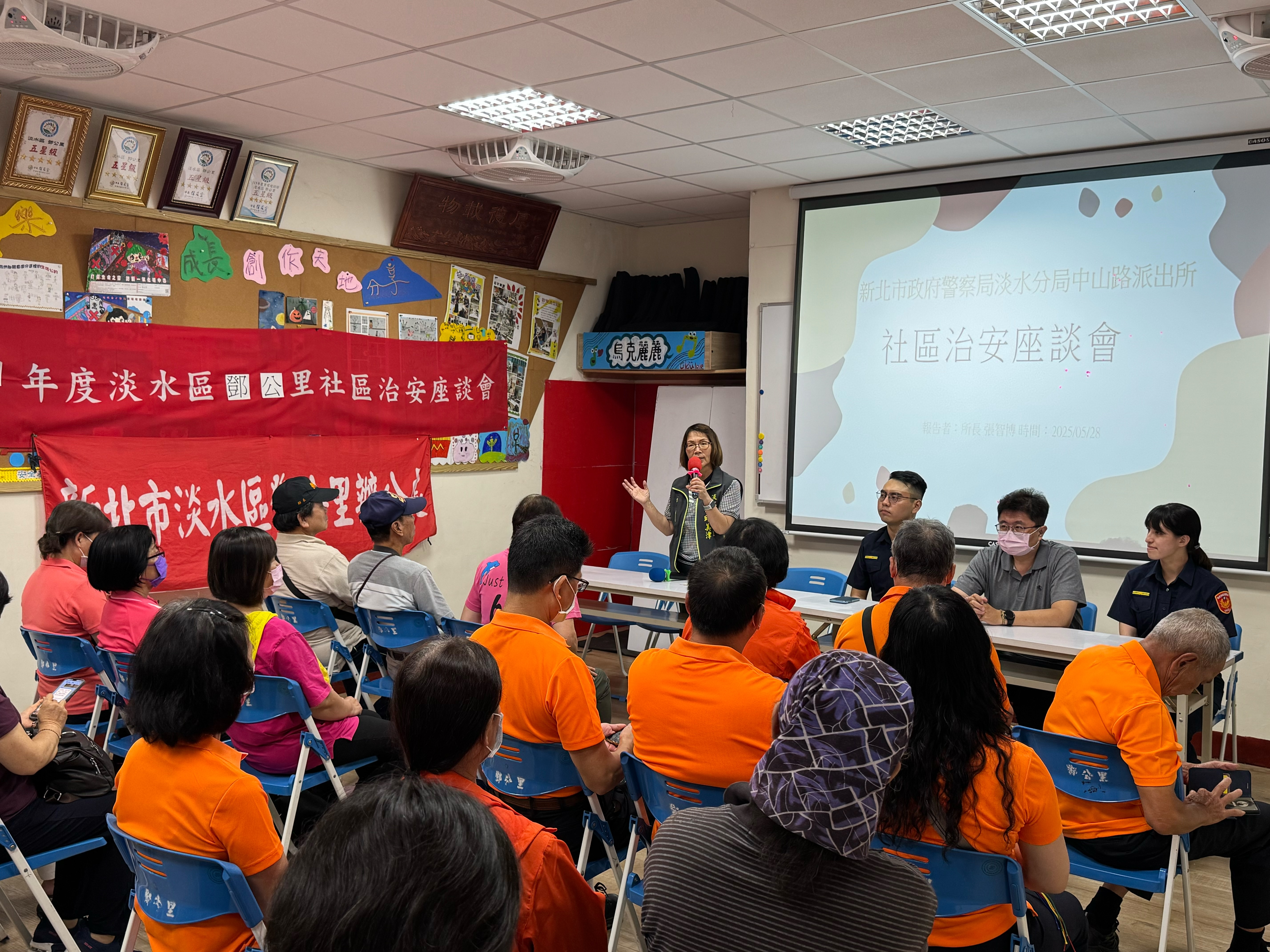 淡水分局於鄧公里活動中心,辦理社區治安會議,防治組、交通組、民防組及偵查隊及中山路派出所張智博所長列席,邀請鄧公里里長邱美津及居民共同與會,透過會議凝聚居民共識與建立良好關係,討論社區治安、交通問題,會中宣導防詐、識詐步驟,提昇居民反詐騙觀念,合力守護社區安全。 相關照片 淡水區鄧公里舉辦社區治安會議 淡水區鄧公里邱美津里長致詞 淡水分局中山所長轄區概況報告 淡水區鄧公里民踴躍參加及提出建議