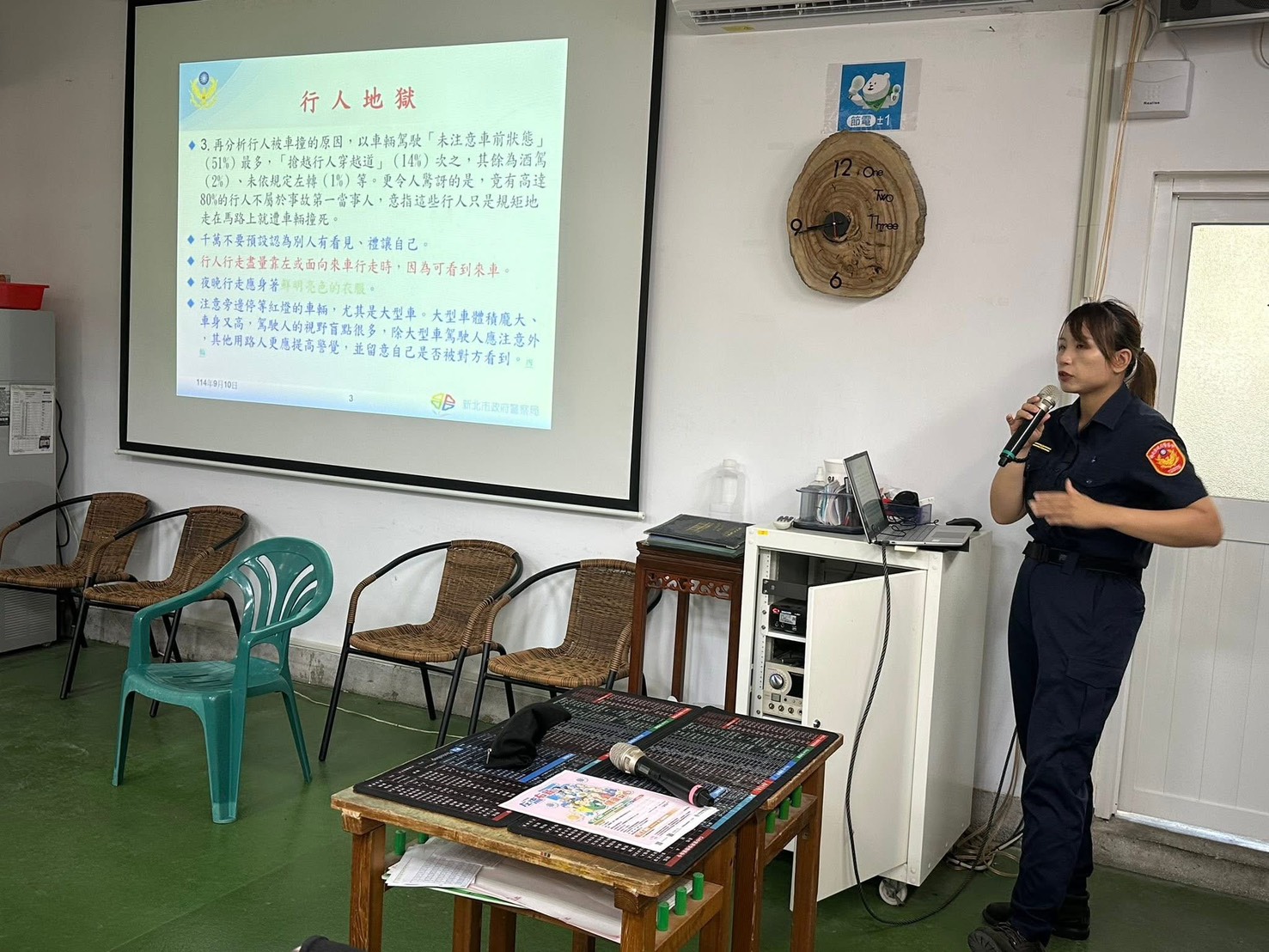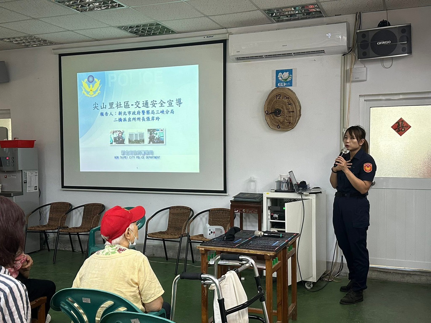 9月是全國交通安全月,鶯歌區尖山里關懷據點在9月10日特別邀請三峽分局二橋派出所所長張岸玲,針對「行人交通安全」為主題,透過宣導來強化長者交通安全意識。張所長把以往處理交通事件的案例分享給長輩,並透過影片呈現,讓大家更能感受到「行的安全」的重要性。 相關照片 二橋所所長張岸玲交通安全宣導 二橋所所長張岸玲交通安全宣導 二橋所所長張岸玲交通安全宣導 二橋所所長張岸玲交通安全宣導