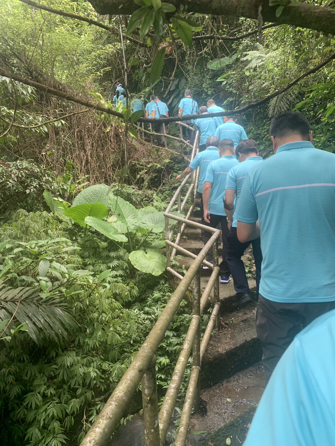 新店分局下轄新店、深坑、石碇、坪林及烏來區,轄內親山路線多元,114年9月26日分局晚報結合常訓體適能精進訓練暨警友站聯誼,假深坑區炮子崙茶山古道,辦理分局晚報,由分局長謝龍富帶領副分局長、各組、室主管及轄區26個分駐派出所所長,利用晚報時間實施走動式管理提升各單位互動,進而達到常訓體適能精進訓練,並倡導員警健康自主的生活習慣。 相關照片 1-勤前合影 2-蜿蜒上山 3-沿途留影 4-登頂合影