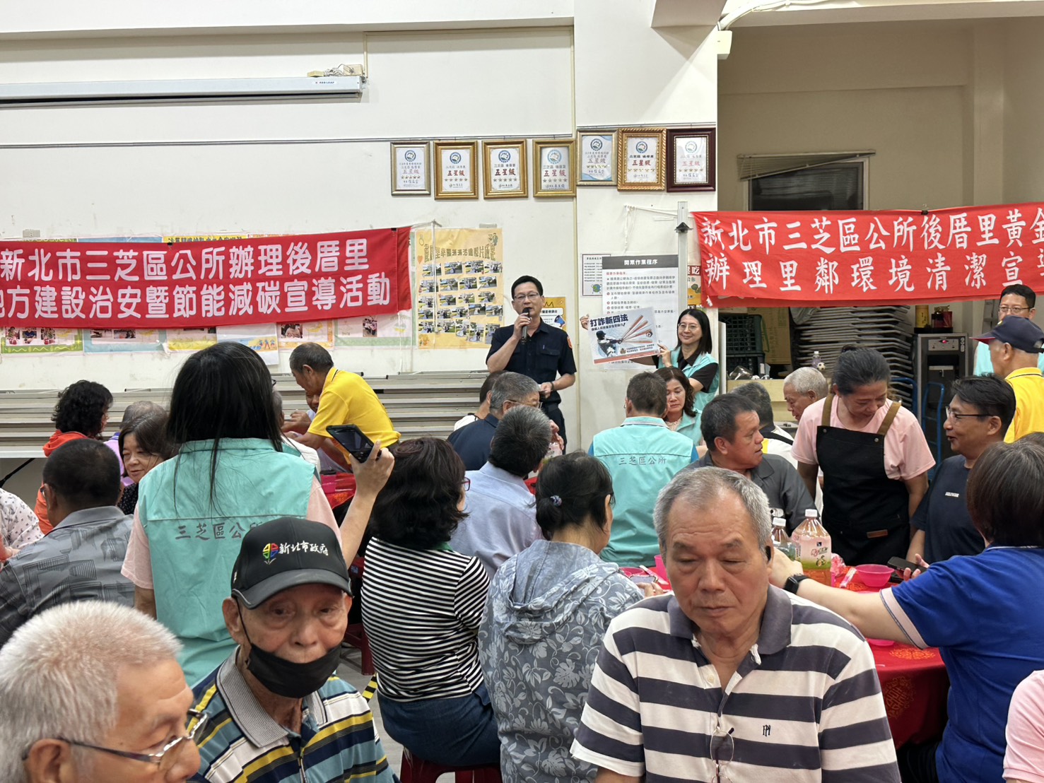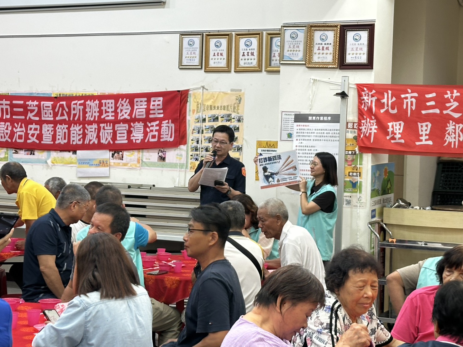 三芝區後厝里於里活動中心辦理治安座談會及慶祝中秋節共餐活動,後厝派出所王信璋副所長偕同仁列席,與後厝里楊秀彥里長及里民共同與會,並舉辦慶祝中秋節共餐活動,期透過活動凝聚居民共識與建立良好關係,討論社區治安、交通問題,會中宣導交通安全、婦幼安全及防詐步驟,提昇居民反詐騙觀念,合力守護社區安全。