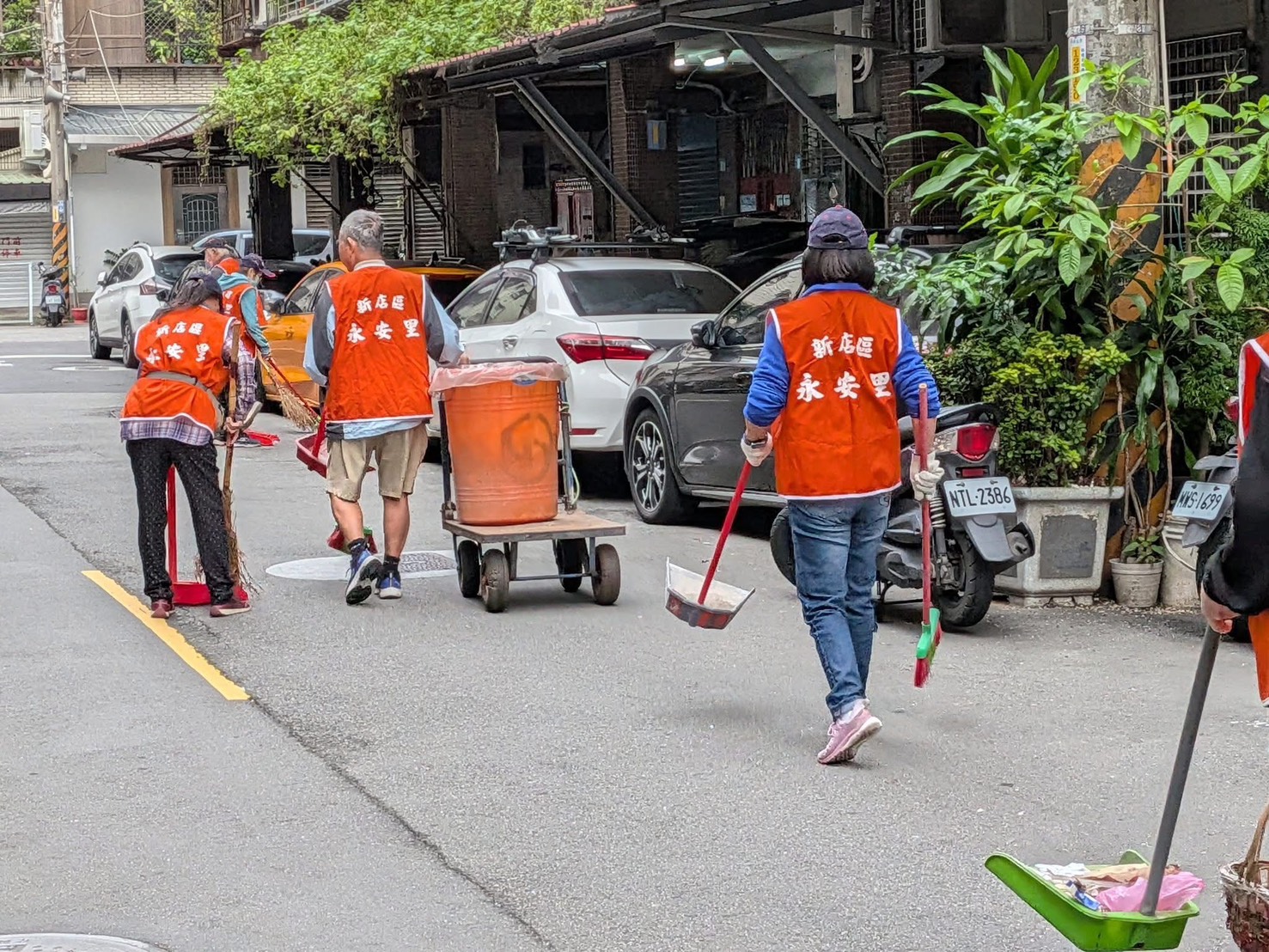 114年11月23日星期日,新店區永安里「環保清潔日」,由永安里林里長帶領里內環保志工、分配打掃路線,附近居民也自動加入行列,社區環境平日大家維護的不錯,防治病媒蚊的「巡、倒、清、刷」,不亂丟菸頭及隨手清狗便,透過志工的宣導,讓大家共同維護居家環境的清潔! 相關照片 1-里內清掃 2-環境清潔 3-環保志工 4-里長與環保志工合影