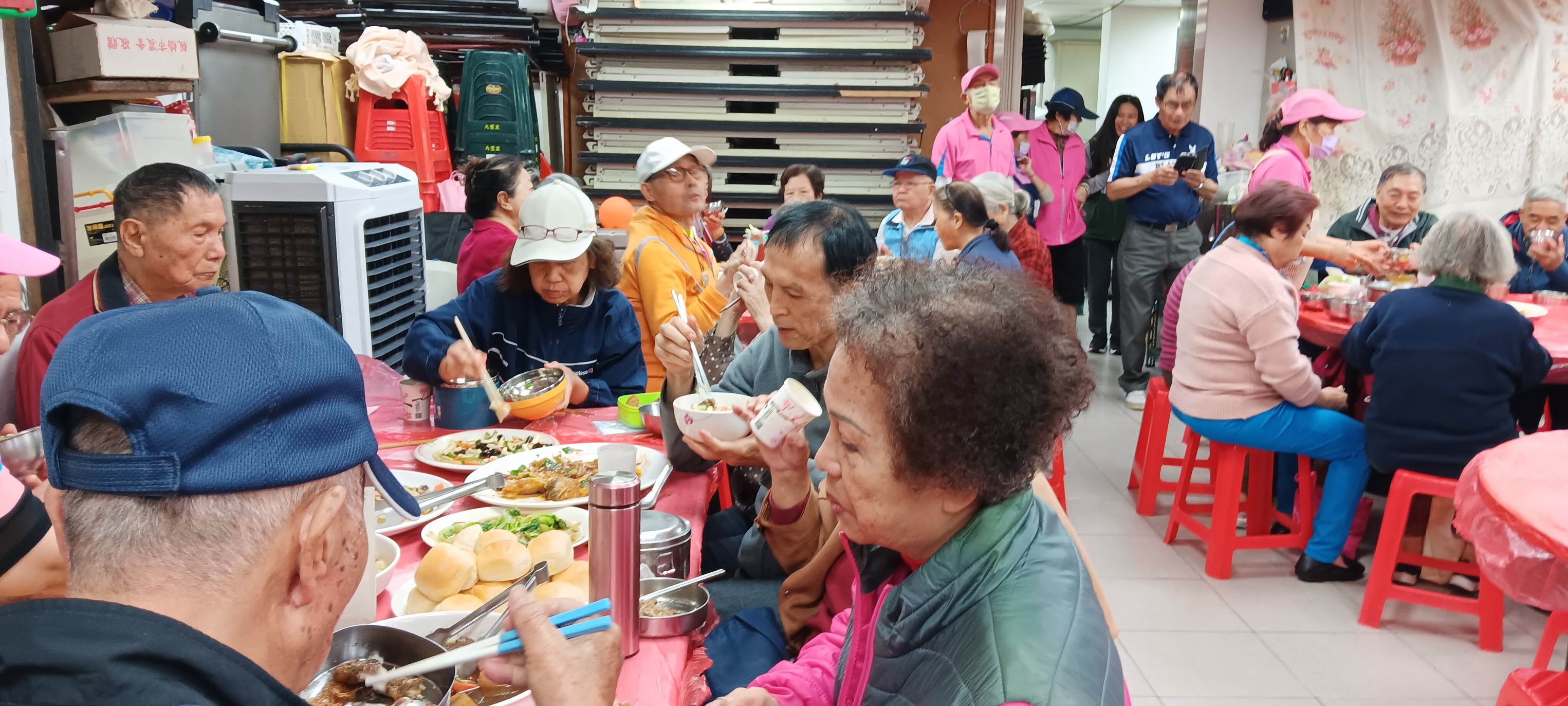 114年12月5日大豐里里長張錦堂於大豐市民活動中心舉辦12月份的共餐,志工們總想給大豐里可愛的長輩鄉親們又營養又美味的餐點,愛心志工們想了試、試了做,總算端出一盤盤桌面上讓人食慾大動的佳餚!也謝謝出席的長輩鄉親們,在里長的大力宣導下,都能自備環保餐具參與,讓我們共創資源循環再利用的低碳環境! 相關照片 張錦堂里長關心里民用餐情形 板橋區區長陪同里民用餐 里民開心享用美味佳餚 辛苦的志工團隊