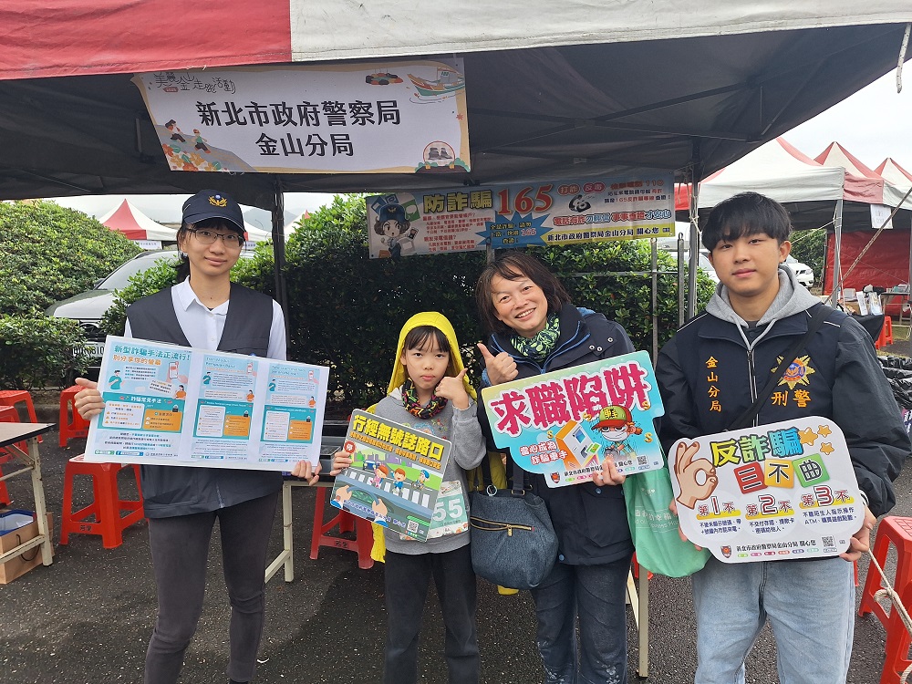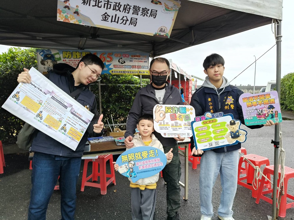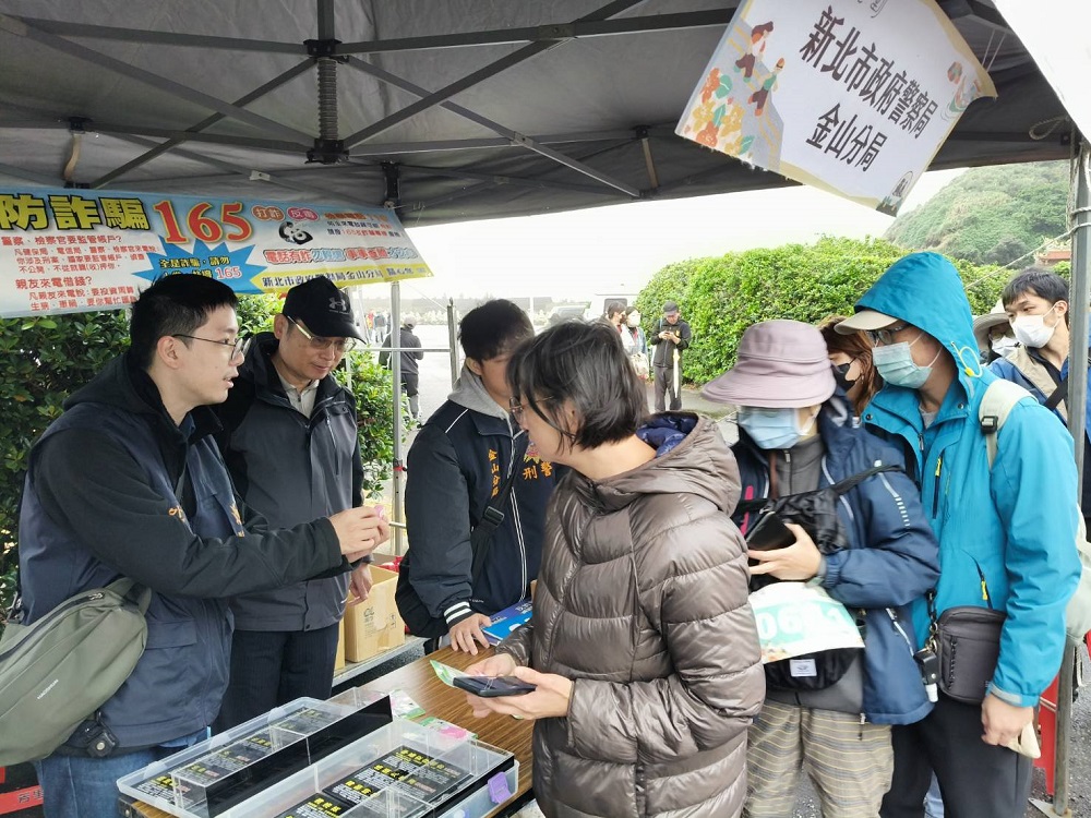 12月13日金山區磺港漁港舉辦美麗金山走跑活動,現場由金山分局交通組、偵查隊、防治組、金山派出所到場進行警政宣導,向現場民眾宣導最新詐騙案例,包含網路購物、APP釣魚簡訊等,以及介紹新興毒品、人口販運防治、雇用外籍移工規定;現場並進行有獎徵答,讓民眾深刻吸收宣導內容。 相關照片 民眾熱情合照 宣導新興毒品 網路詐騙宣導 宣導反詐騙