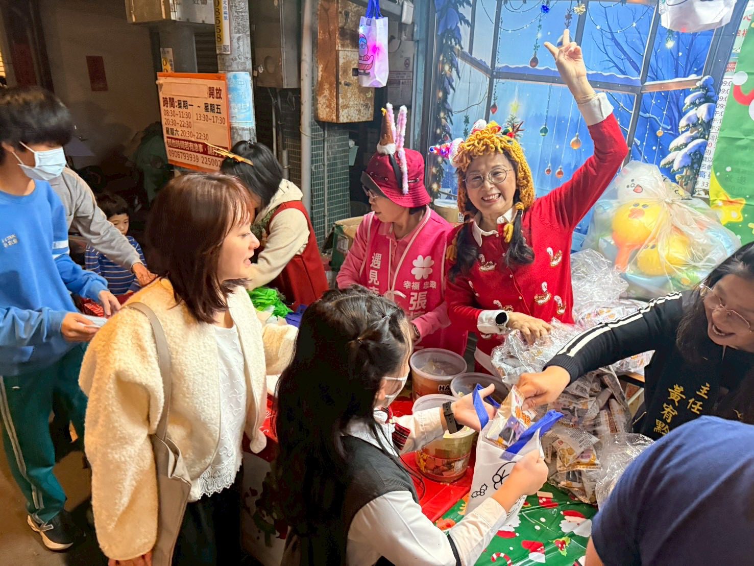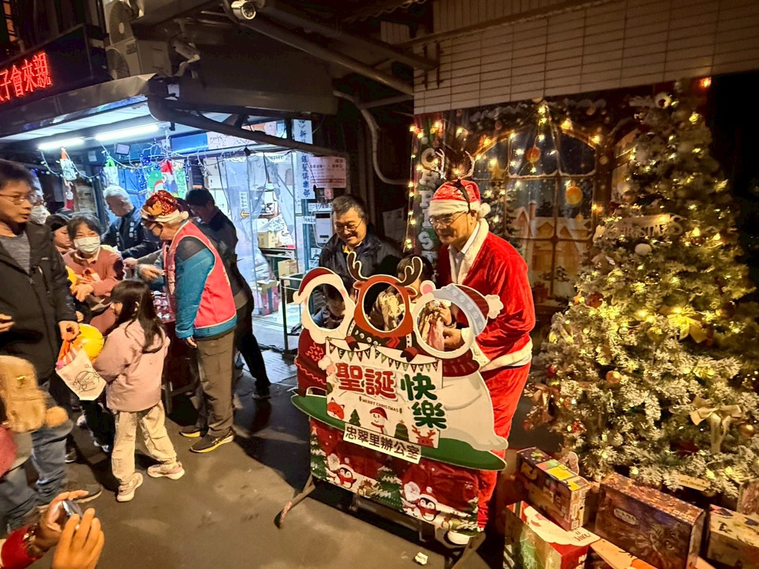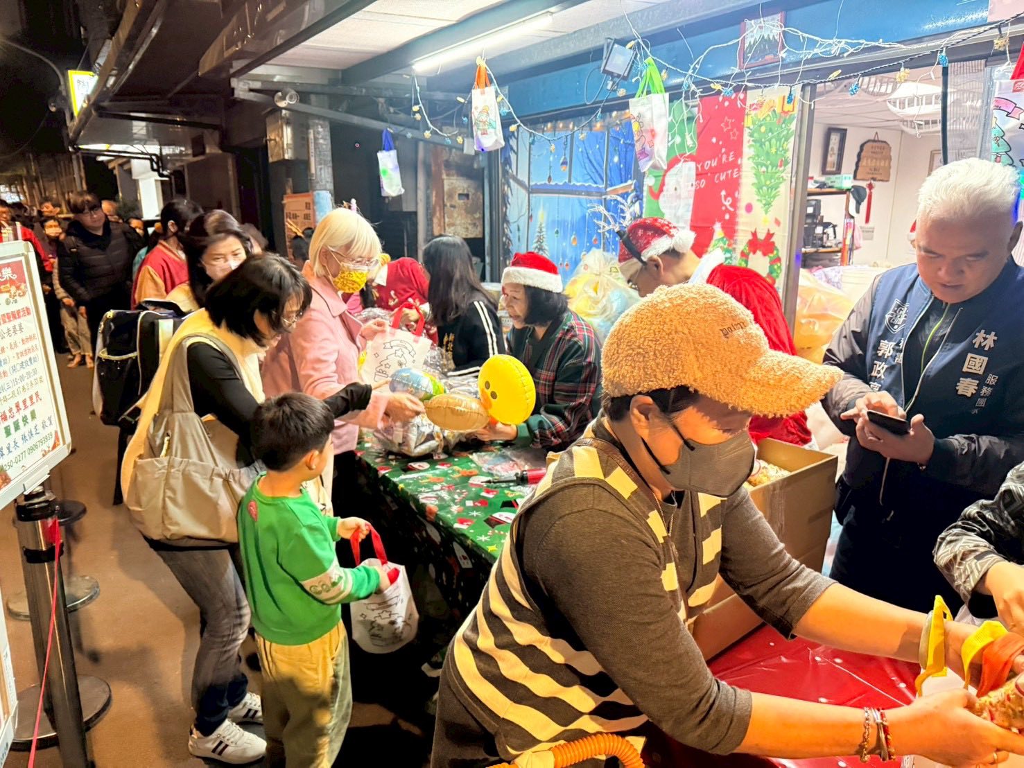 板橋區忠翠里12月24日於忠翠里辦公室(板橋區雙十路二段47巷2弄33號)舉辦「聖誕晚會暨菸蒂不落地、垃圾不亂丟」環保宣導活動,張慎芝里長精心準備小熊軟糖、氣球、動物餅乾及聖誕禮物袋與志工們一起裝扮成聖誕老公公分送給大小朋友,還特別設置拍照打卡區讓里民們拍照留念,現場氣氛和樂融融,笑聲不斷,忠翠里的里民們共度一個幸福溫暖的夜晚。