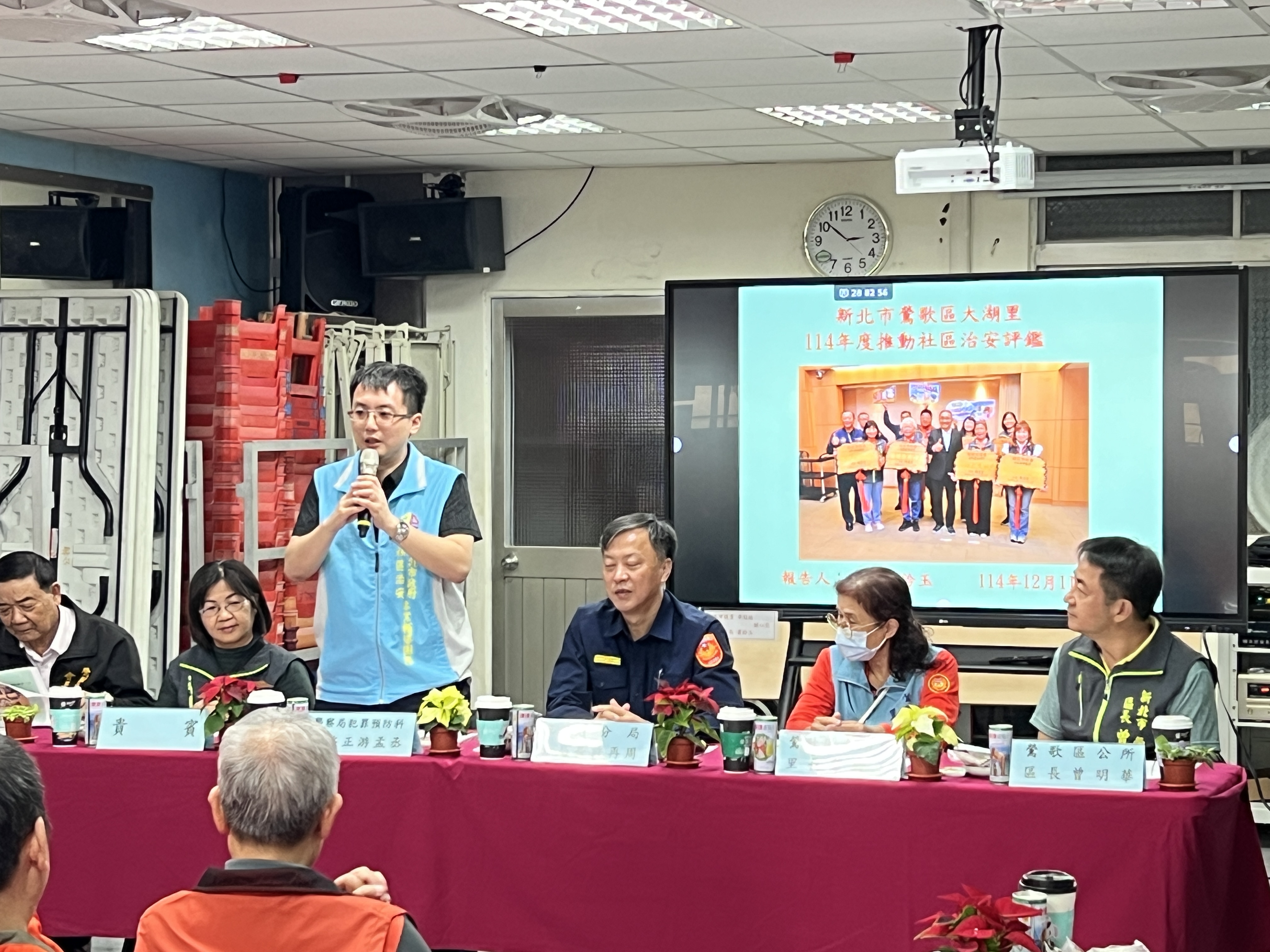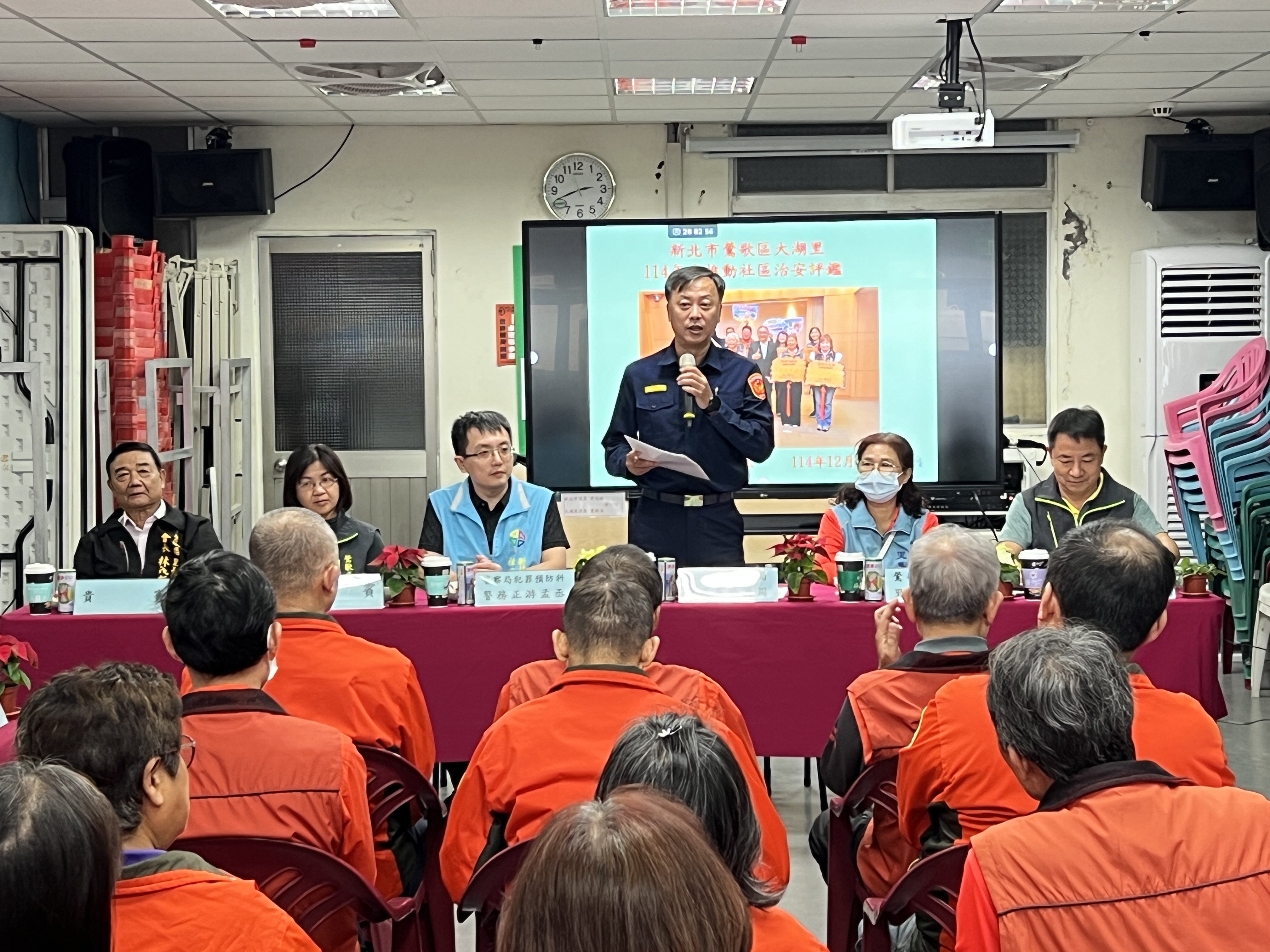 鶯歌區大湖里於114年12月17日辦理推動治安社區營造績效評鑑。從會場的布置、簡報內容,處處可見三峽警分局及里長蕭鈴玉的用心,三峽警分局分局長許再周致詞時表示:大湖里守望相助隊與志工團隊,一直是三峽分局最堅實的後盾。在蕭里長的卓越帶領之下,無論是地方治安的維護、交通秩序的協勤,還是面對急難時的救助,都給予分局莫大及實質的協助。尤其在犯罪預防工作上,貢獻更是良多,是我們分局的「預防犯罪宣導先鋒」。里長和守望相助隊的夥伴們,親自走進校園,面對面地向學童實施反詐、反毒、以及婦幼安全等宣導。這種雙向、活潑的互動方式,讓預防觀念深植人心,遠比單向的口號更具效益。大湖里的輝煌成績,有目共睹,堪稱典範,大湖里在過去的評鑑中成績斐然,110年度第1次參加「加速推動社區治安評鑑」,就一舉榮獲市府第1名!更難得的是,112、113、114年,守望相助隊評比連續三年蟬聯新北市政府「特優」的最高殊榮! 113年度再度參加「加速推動社區治安評鑑」,又獲得市府第1名的榮耀!這麼優異的表現,非常不容易!今年,大湖里由分局推薦,參加114年度內政部「推動社區治安績效評鑑」,預祝大湖里今年度的評鑑能夠再創佳績!