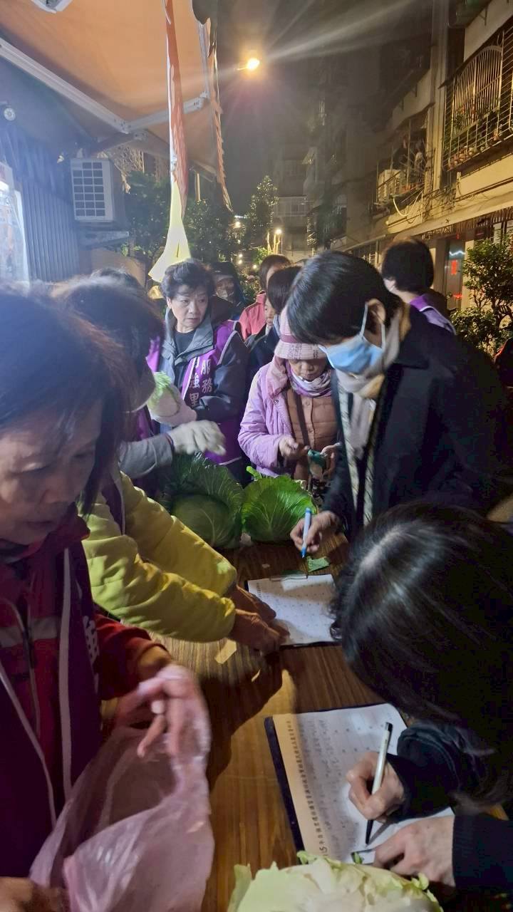 115年1月18日自強里里張雪英在自強里資源回收黃金站利用回收結餘款享購生產過剩高麗菜,幫助菜農,達到資源共享並結合防寒、防詐騙宣導。 相關照片 採購高麗菜協助菜農 里長與服務團隊合影 里民排隊領取高麗菜 板橋派出所犯罪預防宣導