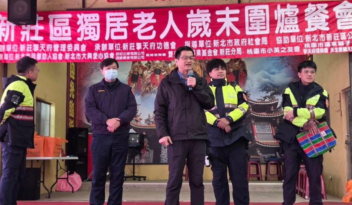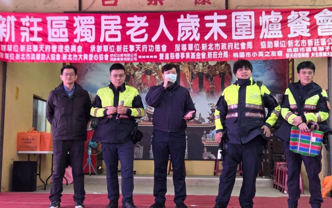 新莊區擎天府偕同新莊區公所、新莊分局及在地愛心單位,於本月10日舉辦了熱烈的「歲末圍爐關懷活動」。現場不僅有豐富的佳餚,還有由擎天府國樂團、雙連社會福利慈善事業基金會、銀色知悠生舞蹈團及鳳姊歌舞團帶來的精采表演,吸引著長輩們走入戶外、互相問候,臉上洋溢著開心的笑容。 相關照片 精彩表演 新莊擎天府舉辦獨居長者歲末圍爐活動 新莊分局識詐宣導 新莊分局犯罪預防宣導