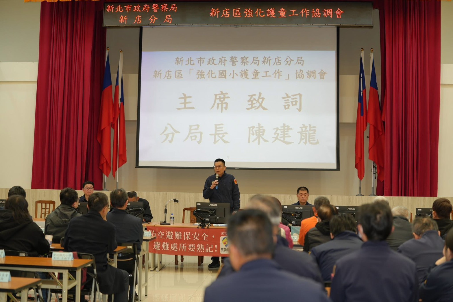 115年2月9日15時新店分局邀集新店區區長、轄內各國小校長、家長會代表、里長及協勤民力(義警、民防、義交、警察志工),辦理第1場次新店區強化國小護童工作協調會,上學路不孤單!一起守護孩子每一步!建立統一指揮體系,有效協調不同單位人力及資源,並依路口風險分級部署,由警察鎮守車多路口疏導交通、取締違停,其餘路段由志工、義警、民防、義交、巡守隊等接力協守,會中多方討論,未來將持續檢視各校護童狀況,優化防護措施,讓家長更放心,讓孩子每天都能平安出門,快樂回家。