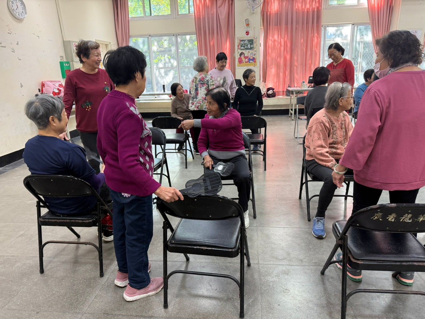 廣德里里長周建和特別在重慶公園市民活動中心(板橋區重慶路245巷32弄18號)舉辦銀髮族樂器敲打活動,邀請專業的老師開課,老師帶著里民們一起運動,利用手上的拍板訓練肌耐力、打鼓,各種道具訓練手腦協調,跟著音樂擺動、各式敲擊,讓銀髮族的里民們增添趣味,也讓身體更健康。 相關照片 里民認真練習拍打 里民互相交流拍打心得 專業老師個別指導動作 專業老師教導拍打動作