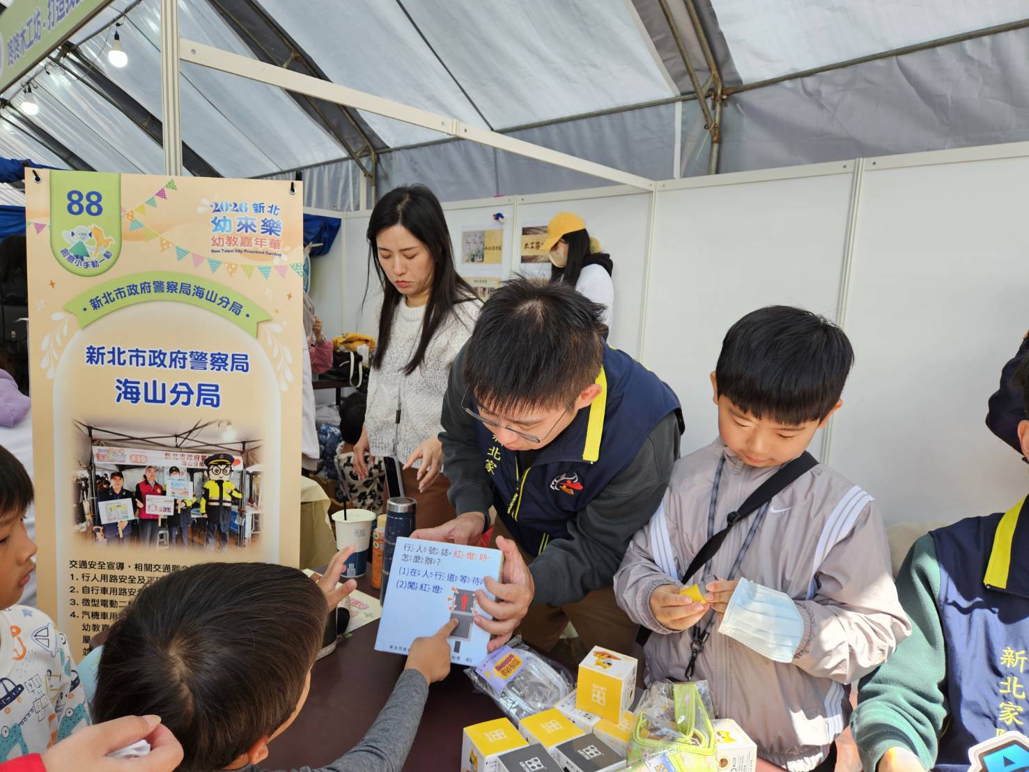 115年3月14日「新北幼來樂—幼教嘉年華」於新北市市民廣場熱鬧登場,現場超過百個學習攤位吸引逾五千名親子參與。新北市積極擴充教保資源,全力打造安心育兒環境。活動現場海山分局亦共襄盛舉,結合防治組、交通隊及偵查隊實施重點宣導,針對兒少保護、交通安全及防範犯罪進行深入淺出的解說,強化家長與孩童的法律與防護意識。透過政府與警政單位的協力,不僅展現新北優質的教育力,更建構全方位的守護網,讓每一位孩子都能在安全且充滿探索機會的校園中快樂成長,共同營造宜居且充滿歡笑的韌性城市。