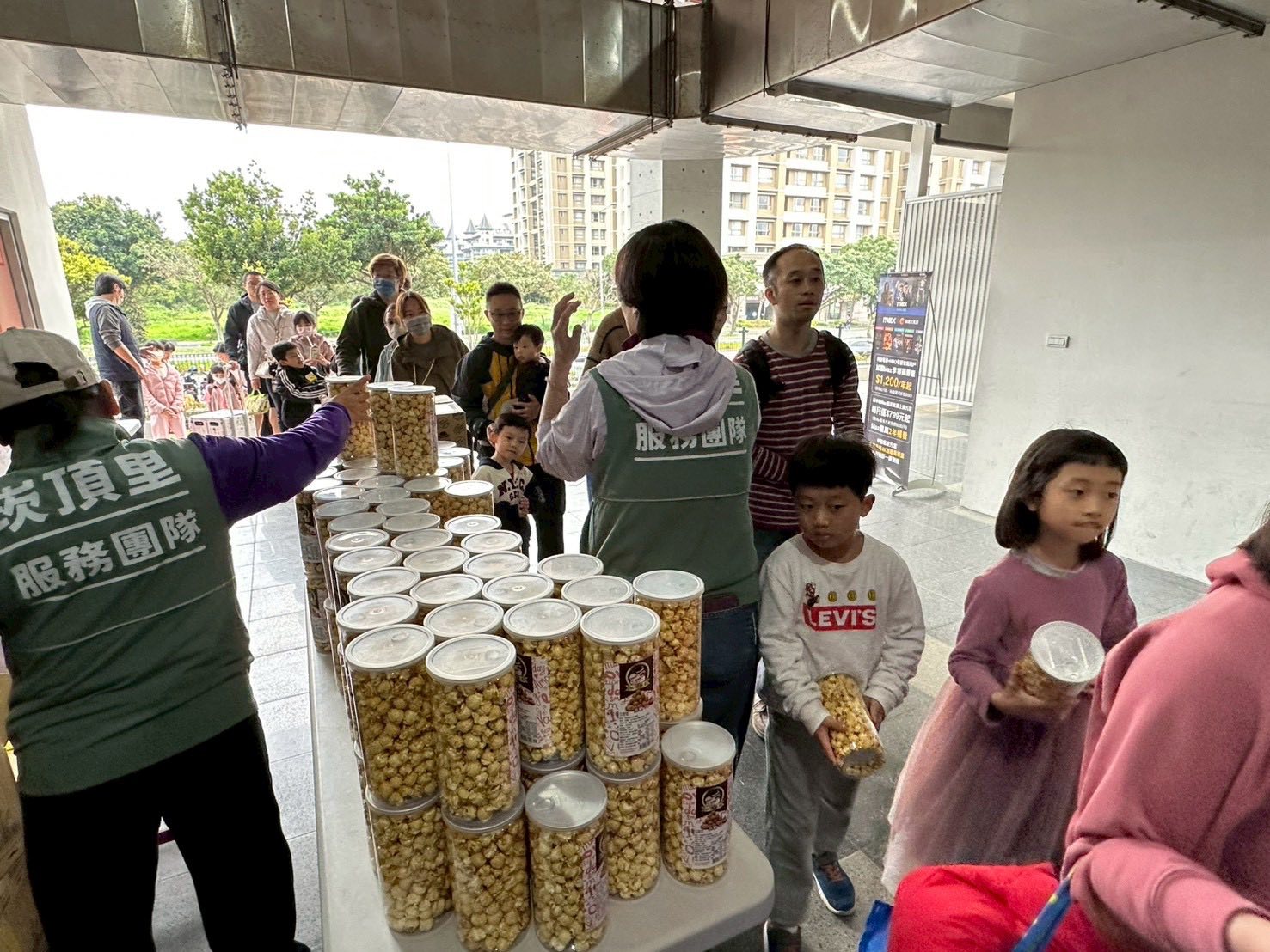 淡水區崁頂里舉辦星光電影院,崁頂里志工們準備從中午開始,大家就已經在現場忙碌,有人搬著沉重的沙包協助場地佈置,有人在現場引導動線、反覆確認安全,有人默默準備物資、分配工作。現場湧入參加星光電影院的人潮,大家坐在草地上開心看電影、享受親子時光,整個操場滿滿都是笑聲與畫面,氣氛溫馨又熱烈。