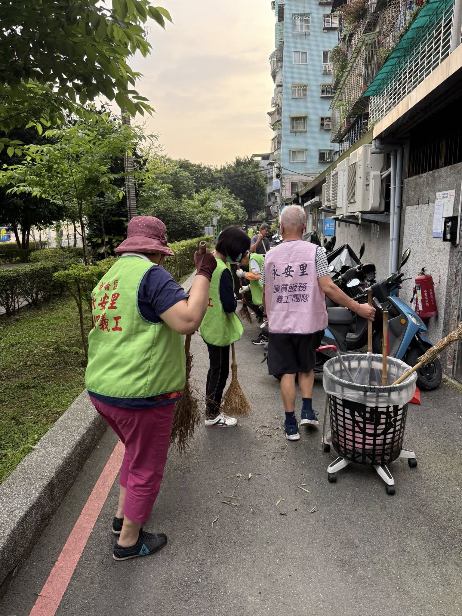 115年4月11日,板橋區永安里舉辦環保清潔日,全里動員展開大掃除活動,里長率領志工及里民共同參與,針對巷弄道路、排水溝及公共空間進行全面清理。活動中不僅加強環境整潔,也宣導垃圾分類與資源回收觀念,提升居民環保意識,透過大家齊心協力,讓里內環境煥然一新,營造乾淨舒適的生活空間,同時促進鄰里間交流與凝聚社區向心力,共同打造安全宜居的優質社區。