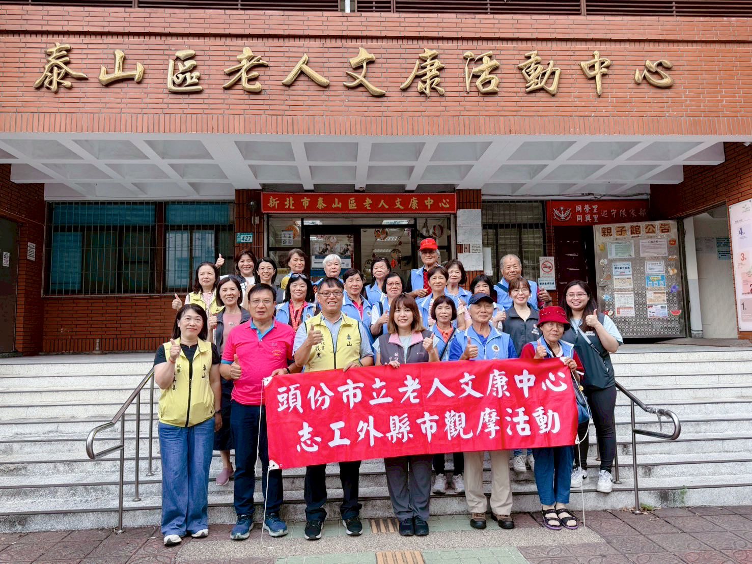 今日頭份市公所由社會課課長帶領志工們,蒞臨泰山區老人文康中心進行交流參訪,全程雙方熱情互動、氣氛融洽。隨後,一行人前往泰山區特色景點,娃娃產業文化館進行參觀,對館內豐富的館藏與精緻的展示讚不絕口,也對在地文化展現高度肯定與支持。 相關照片 主任秘書受贈禮品 大合照 志工們熱情互動 志工們交流參訪