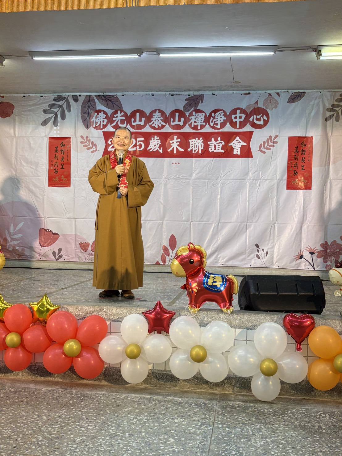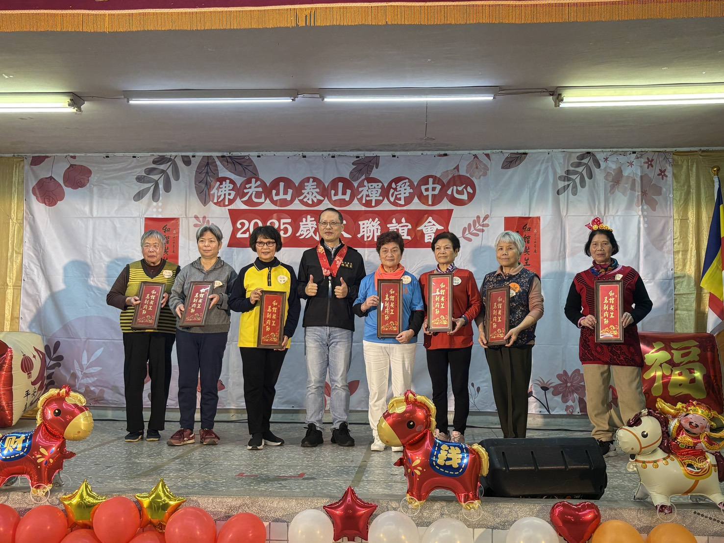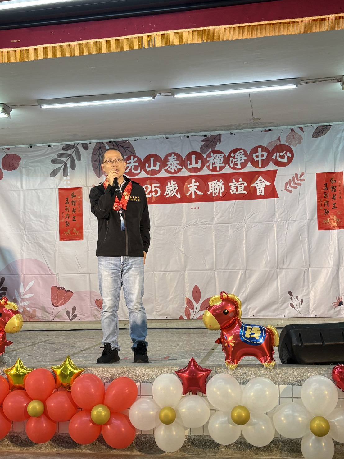佛光山泰山禪淨中心於2月1日舉辦「歲末聯誼」活動,現場氣氛溫馨祥和。泰山區長林俊宏特別到場致意,恭祝活動圓滿順利,並感謝佛光山長期深耕在地、推動人間佛教,以慈悲與善念關懷社會、凝聚社區向心力。期盼透過此次聯誼活動,讓善的力量持續在地方扎根,為新的一年帶來更多平安與祝福、人人平安吉祥。 相關照片 大合照 禪淨住持致詞 區長致詞 致贈感謝狀